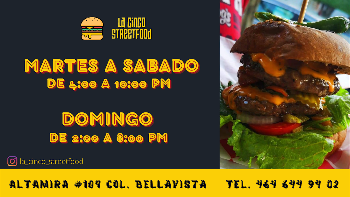 Welcome to La 5 Street Food, where the aroma of freshly grilled hamburgers fills the air in Altamira #104, Bellavista, Salamanca, Gto., Mexico. This hamburger haven is not just another eatery; it's a gathering spot where flavor reigns supreme and each burger tells a story of passion and dedication.